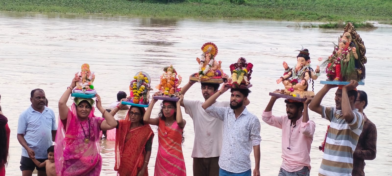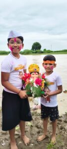रेवसा येथे पेढी नदीच्या पात्रात लाडक्या गणरायाला निरोप.