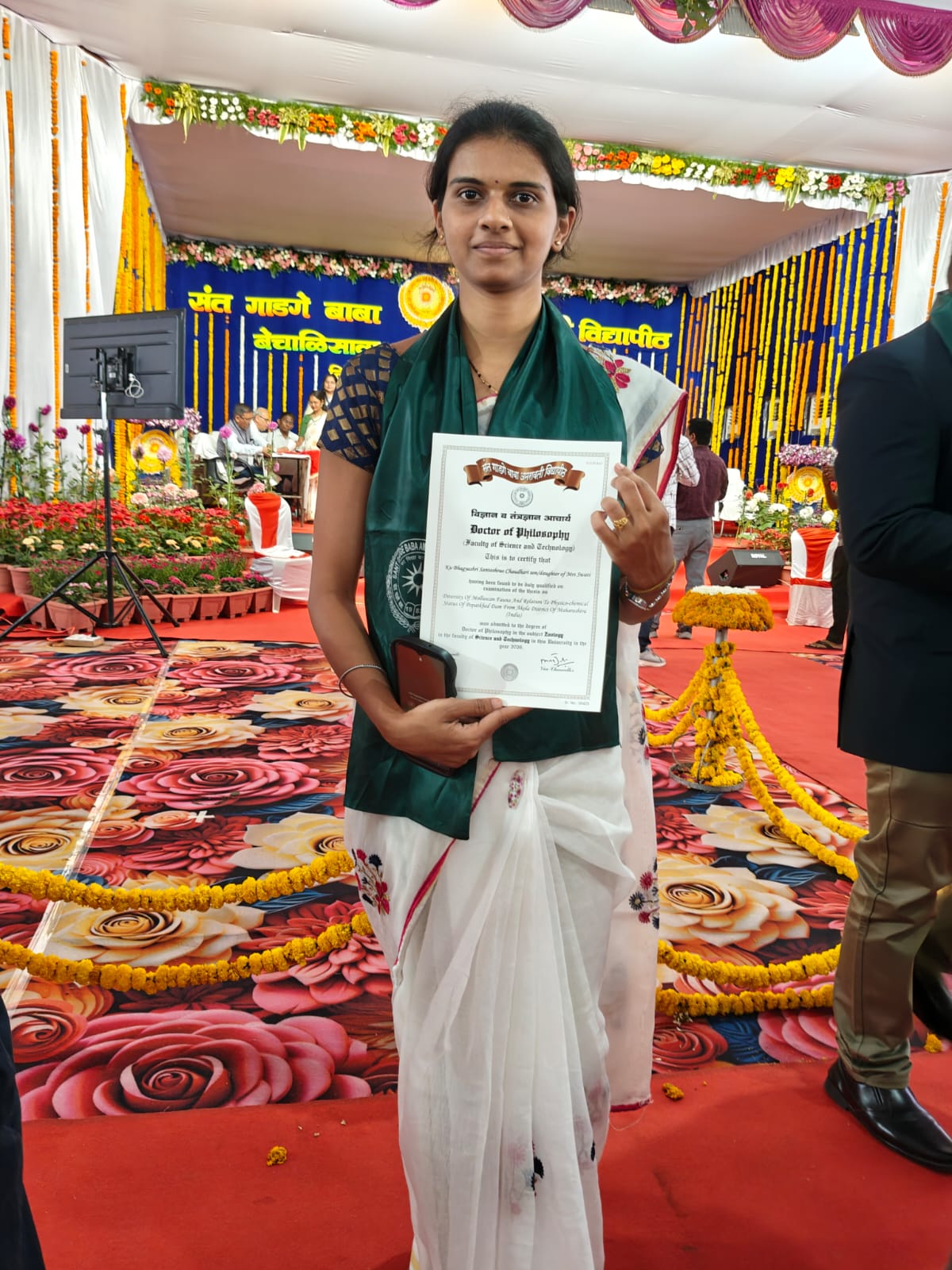 भोजराज काळे सर यांची स्नुषा सौ.भाग्यश्री सिद्धेश काळे (चौधरी) यांना संत गाडगेबाबा अमरावती विद्यापीठ येथे 42 व्या दीक्षांत समारंभामध्ये विज्ञान व तंत्रज्ञान विभाग अंतर्गत Zoology या विषयात डॉक्टरेट पदवी प्रदान करण्यात आली , पुढील उज्जल वाटचाली करिता समाजातील सर्व स्तरावर शैक्षणिक सामाजिक राजकीय व सांस्कृतिक क्षेत्रातून त्यांचे सर्वत्र अभिनंदन करण्यात येत आहे.