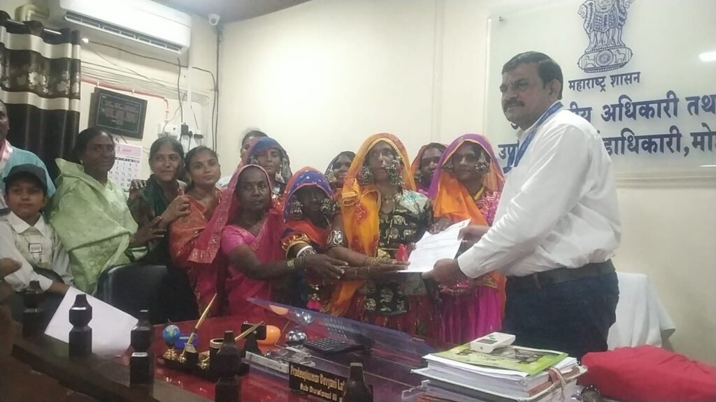 मराठा समाजाला लागू करण्यात आलेला हैदराबाद गॅझेटच्या धर्तीवर राज्यातील बंजारा समाजाला अनुसूचित जमाती ‘ब’ प्रवर्गाचे आरक्षण मिळण्याकरिता मोर्शी तालुका बंजारा आरक्षण कृती समितीचा तहसील कार्यालयावर महामोर्चा उपविभागीय अधिकारी यांना निवेदन सादर करण्यात आले.बंजारा आरक्षण कृती समितीच्या वतीने मंगळवारी दुपारी एक वाजता चांदूर बाजार मार्गावरील पेट्रोल पंपा पासून मोर्शी तालुका बंजारा समाज आरक्षण कृती समितीच्या वतीने महामोर्चा चे आयोजन करण्यात आले होते. आंध्र प्रदेश, तेलंगणा, दिल्ली, राजस्थान, कर्नाटक, मध्य प्रदेश, हिमाचल प्रदेश इत्यादी राज्यात बंजारा समाजाला अनुसूचित जमातीचा दर्जा मिळाला आहे. हैदराबाद गॅझेट व सी पी अँड बेरार च्या करारानुसार राज्यातील सर्व बंजारा समाज बांधवांना एस टी प्रवर्गाचे आरक्षण देण्यात यावे या मागणीसाठी बंजारा समाज महिलांनी पारंपारिक पोशाख परिधान करून डफडे वाजवत महामोर्चा काढण्यात आला होता. महामोर्चात सहभागी समाज बांधवांनी यावेळी आरक्षण आमच्या हक्काचे नाही कोणाच्या बापाचे, एकच लाल सेवालाल, बंजारा समाजाला एस टी प्रवर्गाचे आरक्षण मिळालेच पाहिजे अशा जोरदार घोषणा सुद्धा यावेळी देण्यात आल्या होत्या. तेलंगणा व आंध्र प्रदेशच्या धर्तीवर महाराष्ट्रातही एस टी प्रवर्ग आरक्षणाची मागणी केली आहे.महामोर्चा चे रूपांतर तहसील कार्यालया जाहीर सभेत झाले असता बंजारा समाज कृती समितीचे अध्यक्ष देवराव चव्हाण, पूजा राठोड, श्रीकृष्ण पवार इत्यादीने समाज बांधवांनी महामोर्चात सहभागी समाज बांधवांना मार्गदर्शन केले. त्यानंतर मुख्यमंत्री देवेंद्र फडणवीस यांच्या नावे असलेले निवेदन उपविभागीय महसूल अधिकारी प्रदीप कुमार पवार यांना देण्यात आले. यावेळी तालुक्यातील बंजारा समाज बांधव, महिला मोठ्या संख्येने महामोर्चात सहभागी झाले होते. या महामोर्चा दरम्यान कोणताही अनुचित प्रकार घडू नये म्हणून ठाणेदार राहुल आठवले यांच्या मार्गदर्शनात तहसील कार्यालया पर्यंत पोलीस बंदोबस्त लावण्यात आला होता.