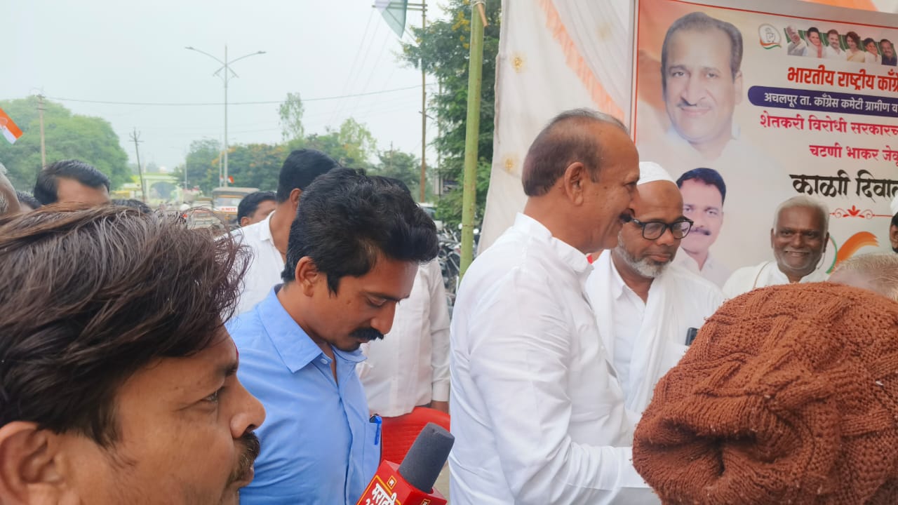 राज्यातील शेतकरी सध्या आर्थिक संकटाच्या भोवऱ्यात अडकले आहेत. पिकांचे झालेले मोठ्या प्रमाणावर नुकसान, वाढती कर्जबाजारी परिस्थिती आणि बाजारातील दरघट यामुळे शेतकऱ्यांच्या आयुष्यात सणाऐवजी काळोख पसरला आहे. दिवाळीसारख्या आनंदाच्या सणातही शेतकऱ्यांच्या घरात अंधार असल्याने, महाराष्ट्र शासनाच्या निष्क्रिय आणि असंवेदनशील भूमिकेविरोधात अचलपूर तालुका काँग्रेस कमिटीच्या वतीने तहसील कार्यालयासमोर “शेतकऱ्यांची काळी दिवाळी” या आंदोलनाचे आयोजन करण्यात आले.या आंदोलनाचे नेतृत्व जिल्हा काँग्रेस कमिटीचे अध्यक्ष बबलू देशमुख यांनी केले. आंदोलनात उपस्थित काँग्रेस कार्यकर्त्यांनी आणि शेतकऱ्यांनी प्रतीकात्मक पद्धतीने “शिदोरी”
