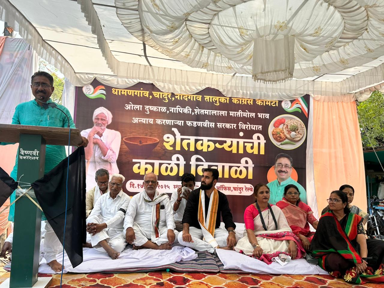 शेतकऱ्यांनी आपल्या घरातून भाकर, ठेचा आणि बेसन आणून प्रतीकात्मक ‘काळी दिवाळी’ साजरी केली.