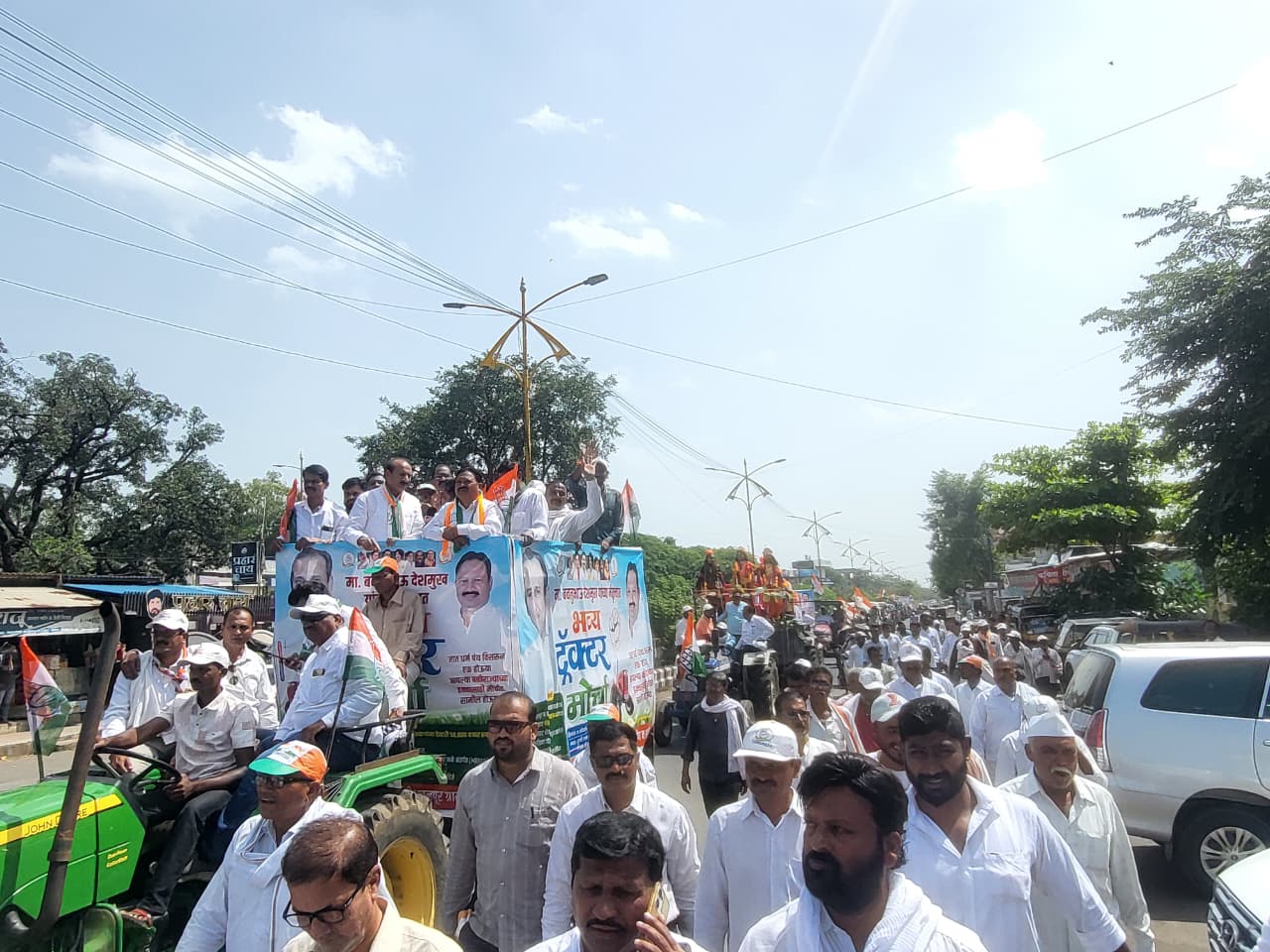 राज्यातील महायुती-भाजप सरकारच्या शेतकरीविरोधी धोरणांविरोधात आज परतवाडा येथे राष्ट्रीय काँग्रेस पक्षाच्या वतीने भव्य किसान ट्रॅक्टर मोर्चाचे आयोजन करण्यात आले. या मोर्चाचे नेतृत्व जिल्हा काँग्रेस अध्यक्ष बबलू देशमुख आणि खासदार बळवंत वानखडे यांनी केले.