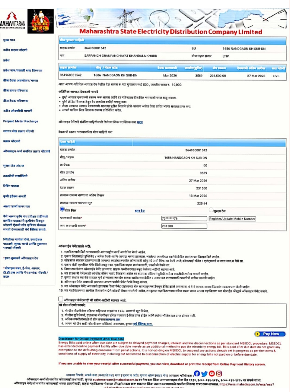 या योजनेसाठी नवीन इलेक्ट्रिक कनेक्शनची मागणी करण्यात ग्राम पंचायतीच्या वतीने आली होती. त्यानुसार दिनांक 12 मे 2025 रोजी धानोरा गुरव सब-स्टेशनमधून वीज जोडणी देण्यात आली.मात्र जावरा मोळवन येथे पाण्याच्या टाकीचे काम अद्याप अर्धवट असल्यामुळे प्रत्यक्ष पाणी पुरवठा सुरूच करण्यात आलेला नाही. त्यामुळे वीज कनेक्शन असूनही कोणताही वीज वापर झालेला नाही.तरीसुद्धा धानोरा गुरव महावितरण (MSEB) कार्यालयाने थेट ₹2,31,220 चे वीज बिल खंडाळा खुर्द ग्रामपंचायतीला पाठवले आहे. यामुळे या ग्रामपंचायतीला महावितरण कंपनीने चागलाच ४४० चा करंट दिला असल्याची संतप्त प्रतिक्रिया सरपंच उमेश दहातोंडे यांनी व्यक्त केली आहे. या प्रकाराने ग्रामस्थांमध्ये महावितरण कंपनी विषयी संतापाची तीव्र लाट उसळली आहे.