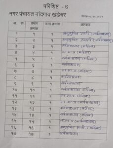 तसेच अनुसूचित जाती आणि नागरी मागासवर्गीयांना पुरेसे आणि न्याय्य प्रतिनिधित्व देण्यात आले आहे.या आरक्षण जाहीरनाम्यामुळे नगर पंचायतीच्या आगामी निवडणुकीची प्रक्रिया वेगाने सुरू होण्याची शक्यता वर्तविण्यात येत आहे. संभाव्य उमेदवार आणि राजकीय पक्षांकडून या निकालानंतर निवडणुकीसाठीची हालचाल सुरू होण्याची चिन्हे दिसत आहेत.आरक्षण सोडत शांततेत आणि पारदर्शकतेने पार पडल्याबद्दल नागरिकांनी समाधान व्यक्त केले.
