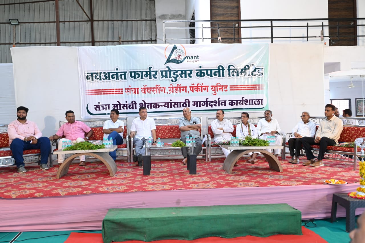 कळमेश्वर. दिनांक. 17/08/2025 रोज रविवारला ठीक 11 वाजता नवअनंत फार्मर प्रोडूसर कंपनी लिमीटेड म्हसेपठार रोड मोहपा येथे स्पेन देशातील टॅन्गो या जातीच्या सत्राचे भरघोस ऊत्पादन व व्यवस्थापनाची महत्वपूर्ण माहिती व AI तंत्रज्ञानाच्या साहाय्याने ऊत्पन्न वाढीकरीता मार्गदर्शन कार्यशाळेचे आयोजन करण्यात आले. सदर कार्यशाळेला खालील मार्गदर्शक व मान्यवर ऊपस्थित होते. मा.श्री सुधिरजी दिवे. सदस्य अॅग्रोव्हिजन फाऊंडेशन, मा.श्री प्रशांत कुकडे सदस्य कार्यकारी समिती डाॅ.पी.डी.के.व्ही.संचालक महाऑरेंज, मा.श्री मनोजजी जवंजाळ संचालक महाऑरेंज, मा. श्री गौरव बिजवे अॅग्रोनाॅमिस्ट , मा.श्री पुष्पकजी खापरे शेतकरी प्रतिनीधी फळपीक विमा समिती अमरावती, मा.श्री बाबारावजी कोठे अध्यक्ष खरेदी विक्री संघ कळमेश्वर, मा. श्री बाबारावजी पाटील सभापती कृषी उत्पन्न बाजार समिती कळमेश्वर, मा.श्री कृष्णरावजी हळदे प्रगतशील शेतकरी मोहपा , मा.श्री वैभव घोंगे माजी सभापती पं.स.कळमेश्वर मा.श्री त्र्यंबकराव मानकर से.नि.मंडल अधिकारी इत्यादी मान्यवर व कार्यशाळेला कार्यशाळेच्या यशस्वीतेसाठी श्री राकेश मानकर अध्यक्ष नवअनंत फार्मर प्रोडूसर कंपनी लिमीटेड यांनी अथक परीश्रम घेतले. कार्यशाळेचे संचालन सौ. हर्षलता मानकर संचालिका नवअनंत फार्मर प्रोडूसर कंपनी लिमीटेड यांनी तर श्री आशुतोष तभाने यांनी आभार मानले.