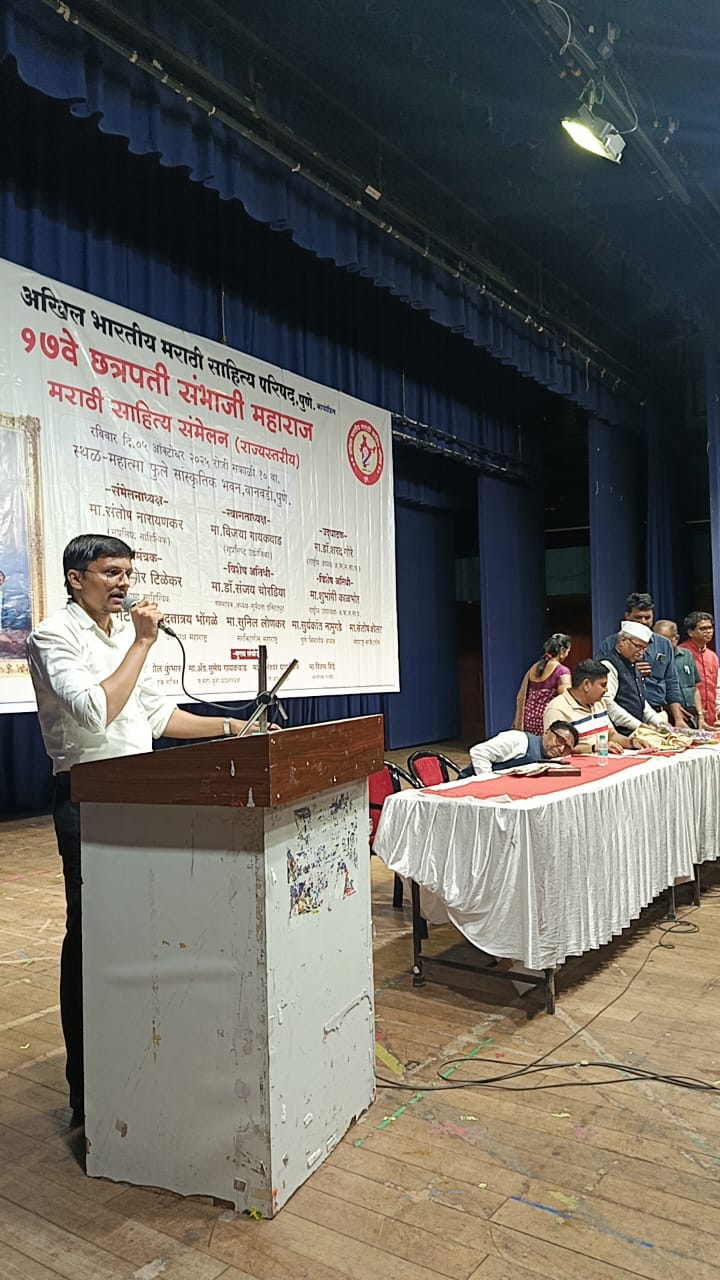 महात्मा जोतिबा फुले सांस्कृतिक भवन वानवडी, पुणे येथे नुकत्याच काल दि ६ रोजी उस्फूर्त प्रतिसादात पार पडलेल्या १७ व्या छत्रपती संभाजी महाराज राज्यस्तरीय मराठी साहित्य संमेलनात राज्यभरातून मोठ्या संख्येने कवी साहित्यिक हजर होते,