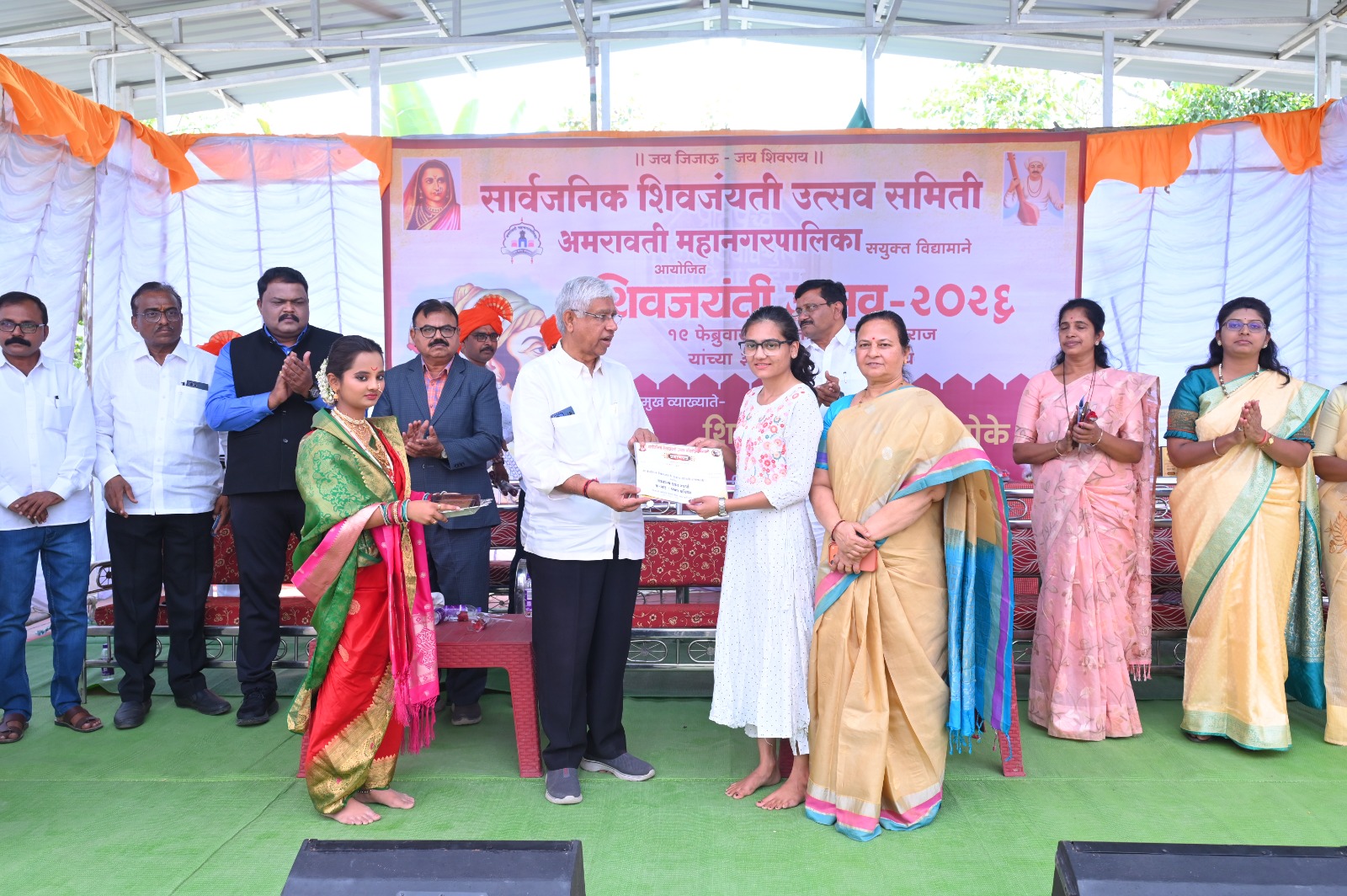 शहरातील जोग स्टेडियम ते काॅंग्रेस नगर रोड स्थित शिवविचारपीठ ( खुले रंगमंच) शिवटेकडी येथे दरवर्षीप्रमाणे सार्वजनिक शिवजयंती उत्सव समिती अमरावतीच्या वतीने गुरुवार दिनांक १९ फेब्रुवारीला छञपती श्री शिवाजी महाराज यांच्या ३९६ व्या जयंती निमित्ताने शिवजन्मोत्सव कार्यक्रमाचे आयोजन करण्यात आले होते.या उत्सवात १९ फेब्रुवारीला सकाळी ८.३० वाजता छञपती श्री शिवाजी महाराजांच्या अश्वारूढ पुतळ्याला अभिवादन व मानवंदना तसेच महाराष्ट्राचे दिवंगत उपमुख्यमंत्री अजित दादा पवार व शिवटेकडी संवर्धन समितीचे व्यवस्थापक राजेश शर्मा यांना श्रद्धांजली अर्पण करून कार्यक्रमाची सुरुवात करण्यात आली शिवछञपतींचे आदर्श मुल्ये व आजचा महाराष्ट्र या विषयावर यांचे अभ्यास पूर्ण विवेचन केले छत्रपती शिवाजी महाराजांपासून फक्त भारतातीलच नाही तर जगभरातील महापुरुषांनी सुद्धा प्रेरणा घेतलेली आहे आणि आपले स्वतःचे स्वतंत्र अस्तित्व निर्माण होते त्यामुळे छत्रपती शिवाजी महाराजांचा इतिहास थोडाफार अमलात आणला तर भारताला महासत्ता व्हायला वेळ लागणार नाही असे प्रतिपादन सुप्रसिद्ध लेखक वक्ता प्रा. प्रेमकुमार बोके यांनी केले,यासोबतच बाल व्याख्याता कु. आराध्या ठाकरे, व वैदेही कडू यांचे व्याखान संपन्न झाले विविध स्पर्धेचे बक्षीस वितरण आणि नवनिर्वाचित महापौर श्रीचंद तेजवानी व उपमहापौर सचिन भेंडे यांचा जाहीर सत्कार कार्यक्रम आयोजित करण्यात आला होता.