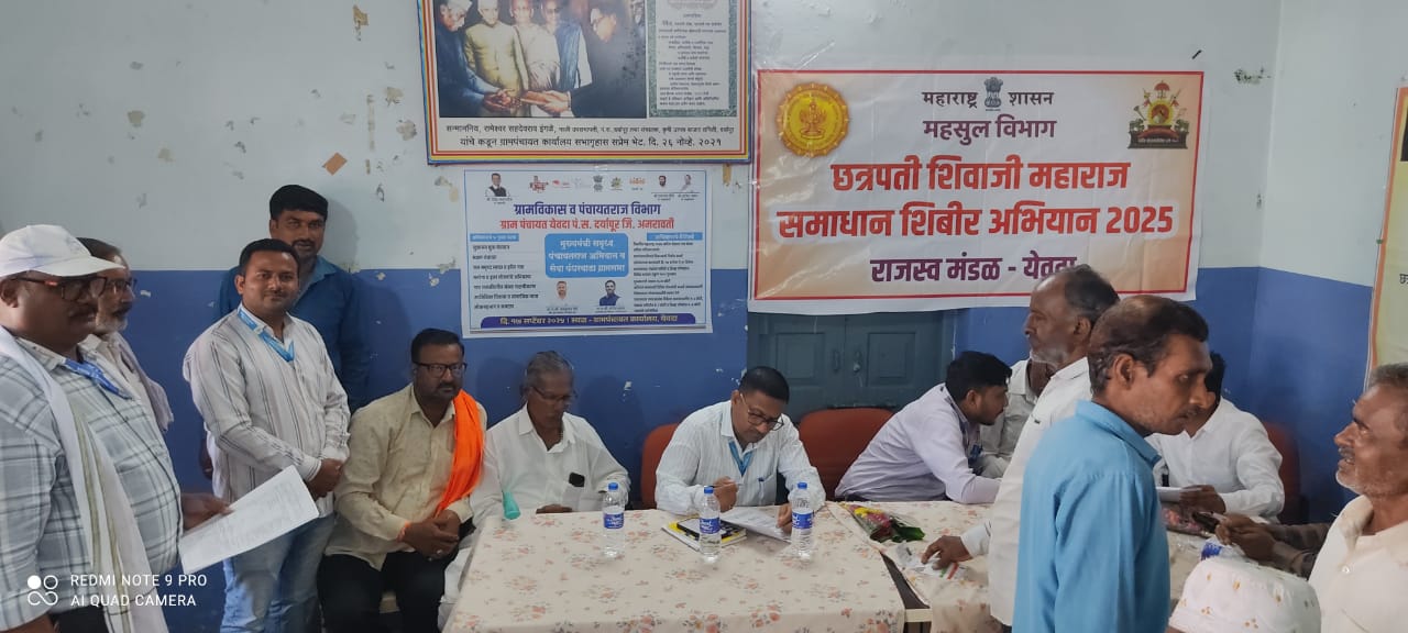 येवदा ग्रामपंचायत कार्यालय येथे राजस्व मंडळ येवदा तर्फे छत्रपती शिवाजी महाराज महाराजस्व अभियान व जनसंवाद कार्यक्रमाचे आयोजन आज दिनांक .24 सप्टेंबर 2025 रोजी घेण्यात आले. सामान्य नागरिक व शेतकरी केंद्रबिंदू मानून महसूल विभाग कार्यरत असून” सेवा पंधरवाडा”2025 अंतर्गत वरील शिबिराचे आयोजन करून यामध्ये शेतकरी, नागरिक ,विद्यार्थी यांना विविध प्रकारचे दाखले ,सातबारा , फेरफार , जिवंत सातबारा मोहीम, शिधापत्रिका प्रमाणपत्र, संजय गांधी श्रावणबाळ योजनेचे आदेश वाटप करण्यात आले. यामध्ये ॲग्रीस्टॅग अंतर्गत फार्मर आयडी काढून घ्यावे , ई पीक पाहणी, लक्ष्मीमुक्ती योजना, सलोखा योजना, शेतकरी यांनी करणे , पी . एम किसान योजना,पांदण रस्त्यांच्या मोहिमे संदर्भात माहिती देण्यात आली. माननीय श्री. आशिष येरेकर ,जिल्हाधिकारी , अमरावती यांचे आदेशानुसार व श्री .राजेश्वर हांडे, उपविभागीय अधिकारी व तहसीलदार डॉ. रवींद्रकुमार कानडजे यांचे मार्गदर्शनात प्रत्येक राजस्व मंडळात शिबिराचे आयोजन करण्यात येत आहेत. कार्यक्रमाचे अध्यक्ष.. श्री . प्रमोद काळे ,नायब तहसिलदार, प्रमुख उपस्थिती श्री.अमानुला खां दिलावरखां , सरपंच , येवदा , श्री.अरविंद पवार, मंडळ अधिकारी , श्री वैभव महाजन ,निरीक्षण अधिकारी, श्री.नकुल सोनटक्के, राजेश मानकर ,सिद्धीकभाई सरपंच उमरी ईतबापूर ,श्री .सुरेश पाटील ,तेलखेडा हे उपस्थित होते. कार्यक्रमाचे सूत्रसंचालन श्रीमती लीना मोहोड ग्राम महसूल अधिकारी येवदा यांनी केले. कार्यक्रमाचे प्रास्ताविक अरविंद पवार मंडळ अधिकारी यांनी केले. महसूल विभागाअंतर्गत पुरविल्या जाणाऱ्या सर्व योजना व सेवांची माहिती सविस्तरपणे देण्यात आली.कार्यक्रमाचे कार्यक्रमाच्या यशस्वीतेकरिता योगेश नागरे, प्रदीप गीते, हर्षल गवई, लीना मोहोड सर्व ग्राम महसूल अधिकारी यांनी परिश्रम घेतले. आभार प्रदर्शन प्रदीप गीते ग्राम महसूल अधिकारी ममदाबाद यांनी केले .महसूल सप्ताह निमित्त विविध कार्यक्रमाचे आयोजन केलेले असून नागरिकांनी या उपक्रमात सहभागी व्हावे असे आवाहन मंडळ अधिकारी श्री.अरविंद पवार यांनी केले.