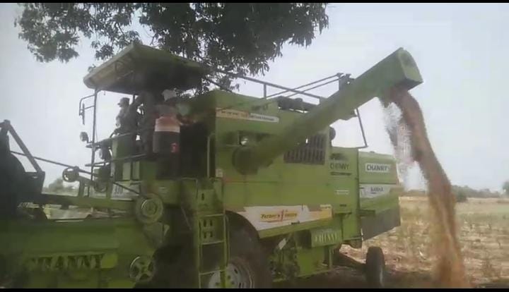पावसाच्या अंदाजामुळे हार्वेस्टरने तातडीने काढणी